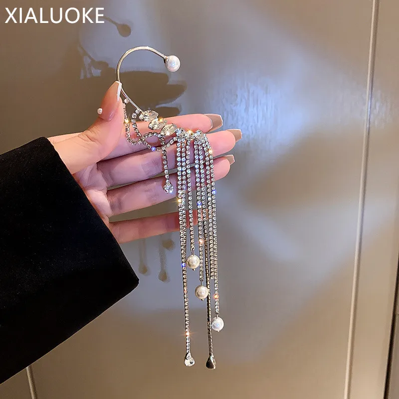 Женские Висячие серьги с геометрическими кристаллами XIALUOKE, элегантные серьги без пирсинга, Ювелирное Украшение