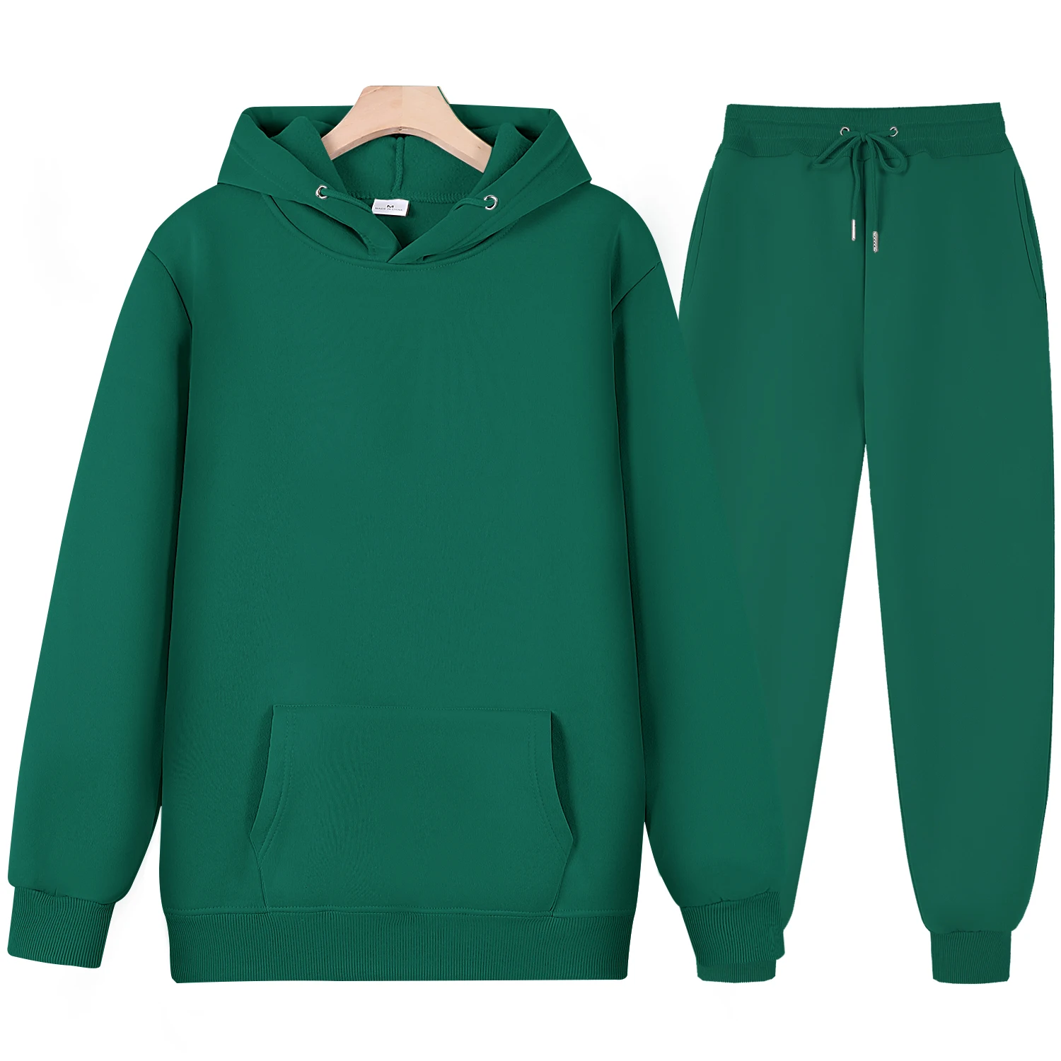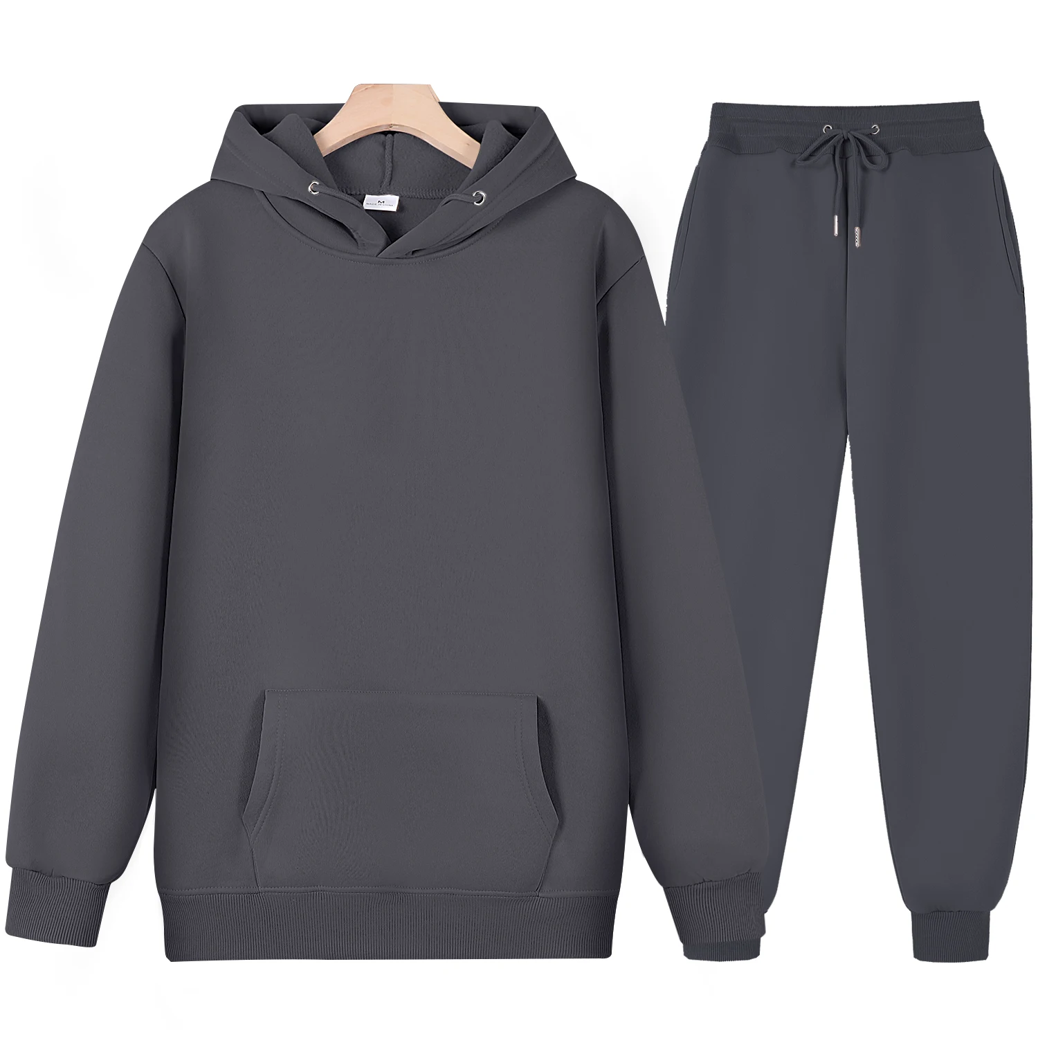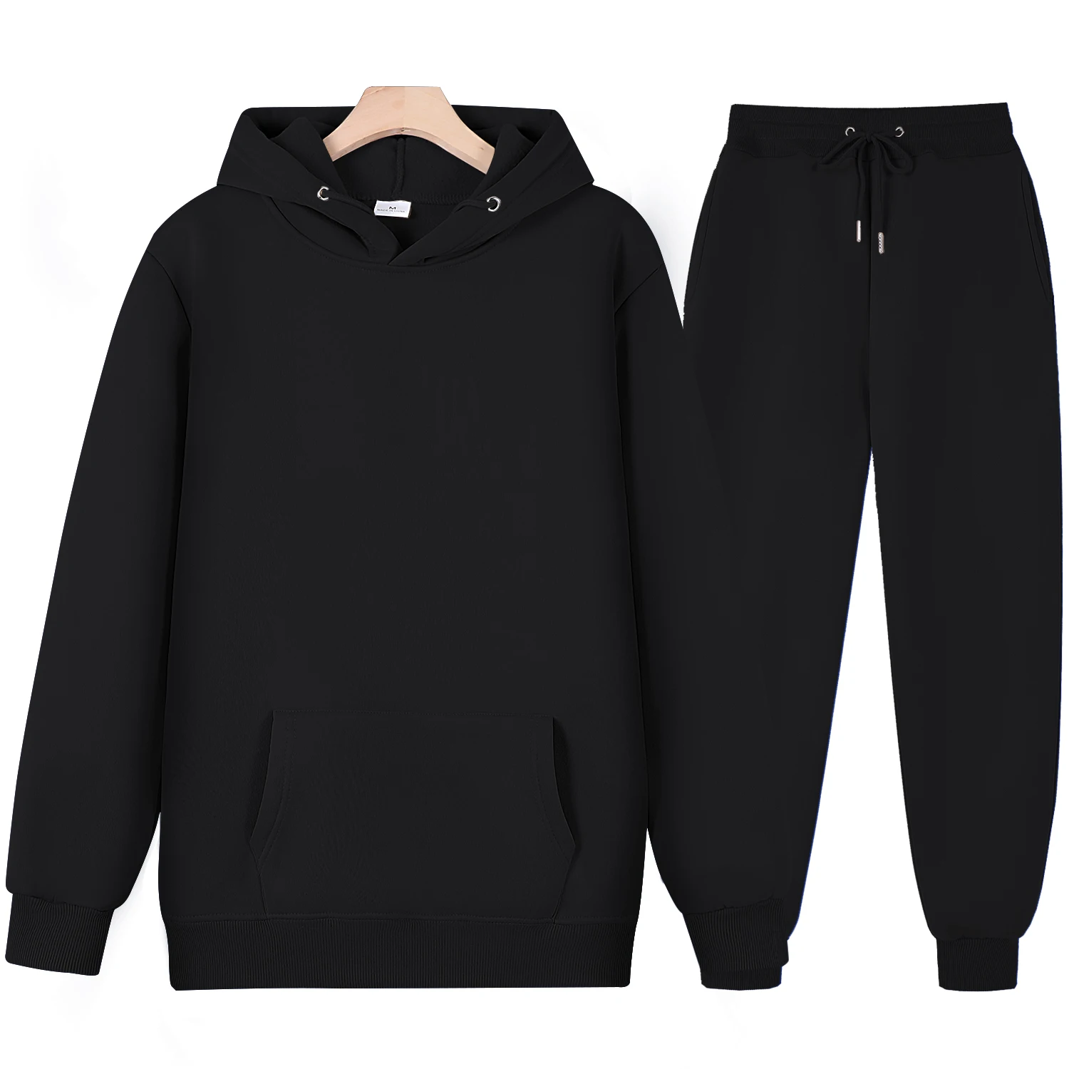 Мужской спортивный костюм с капюшоном, однотонный флисовый свитшот с капюшоном и брюки, Осень-зима 2021