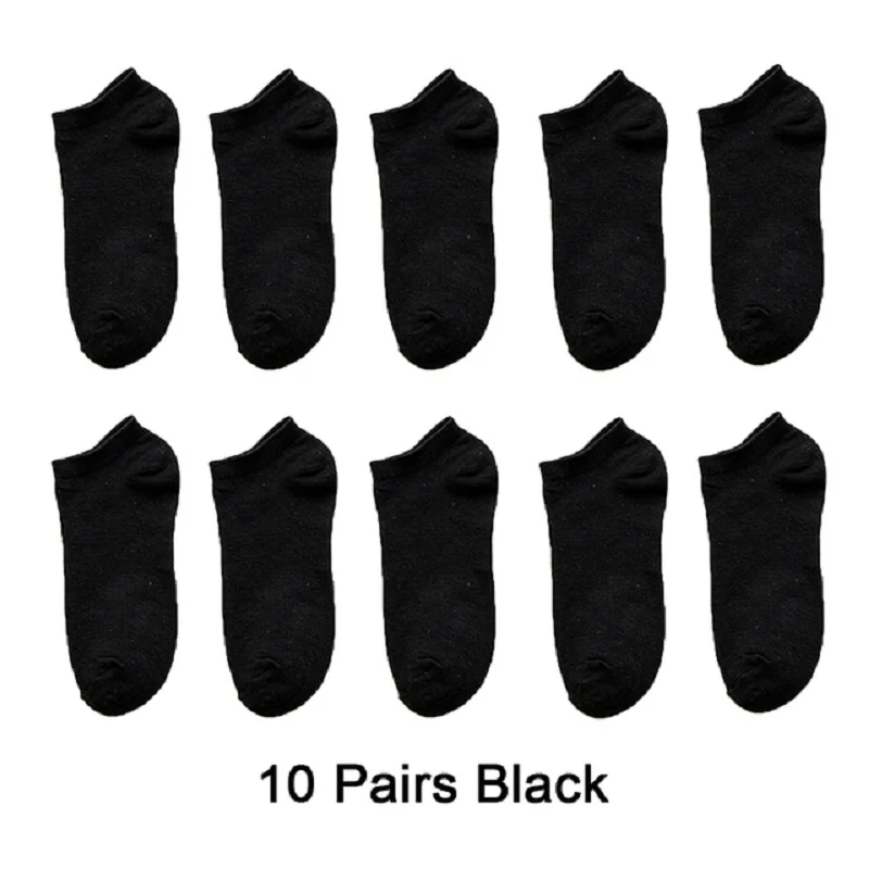 Носки мужские, дышащие, однотонные, черныебелые, 10 пар, удобные но...