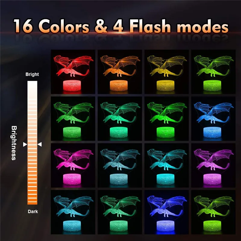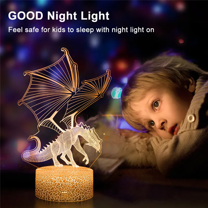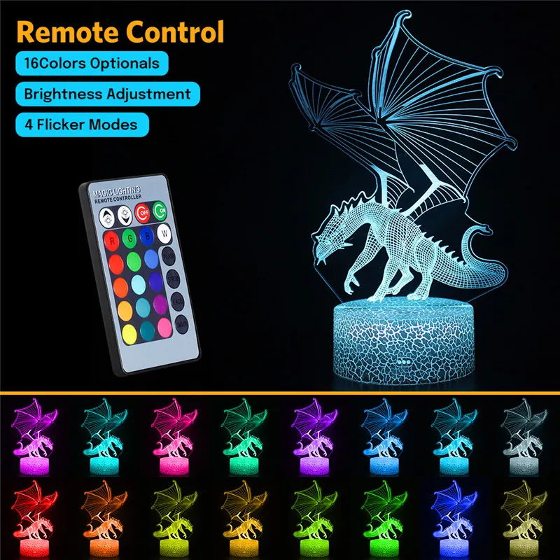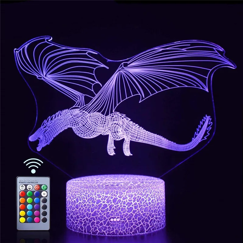 Светодиодный ночсветильник с динозавром драконом, 3D лампа с дистанционным управлением, настольные лампы для спальни, атмосферсветильник, подарок на Рождество, день рождения, домашний декор