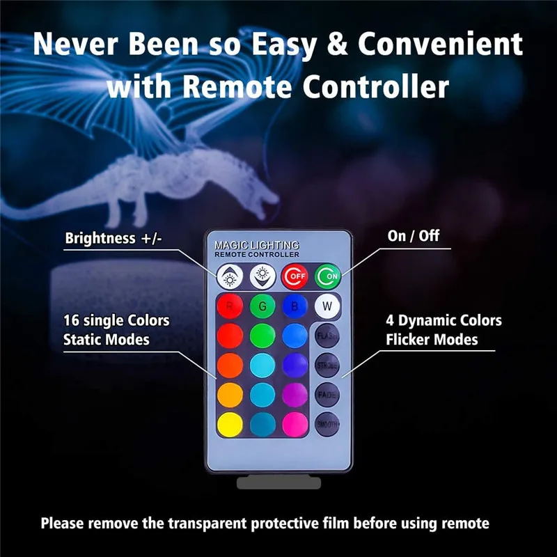 1 шт. пульт дистанционного управления3D ночникНастольная лампа 16 цветовНочной светильник для ребенка, подарок на день рождения, подарок для девочки
