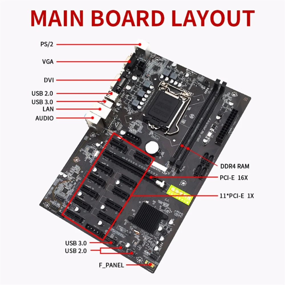 Наименование товара: материнская плата BTCЦвет: черныйМатериал: PCB + металлРазмер: 29,5x19 смТип памяти: DDR4Слот для памяти: 2 × DDR4Частота: 2133/2400/2800/3000 МГцПамять: максимум 16 гНабор микросхем: Intel B250Тип гнезда ЦП: LGA 1151Разъем питания: 1*4pin, 1*24pinРежим питания: 3 фазы, 2 гнезда вентилятора ЦП
