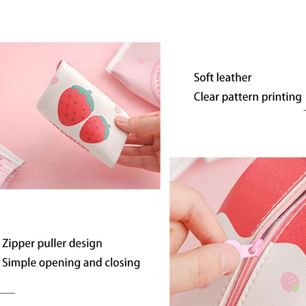 Милый чехол для карандашей с клубничным молоком, пеналы из ПУ матер...