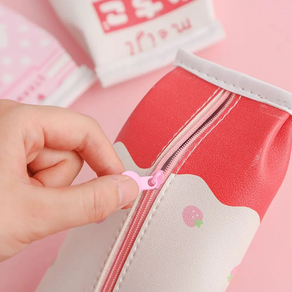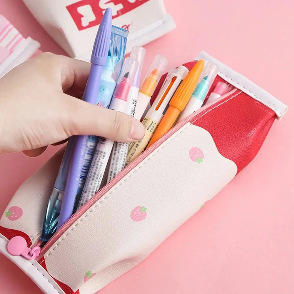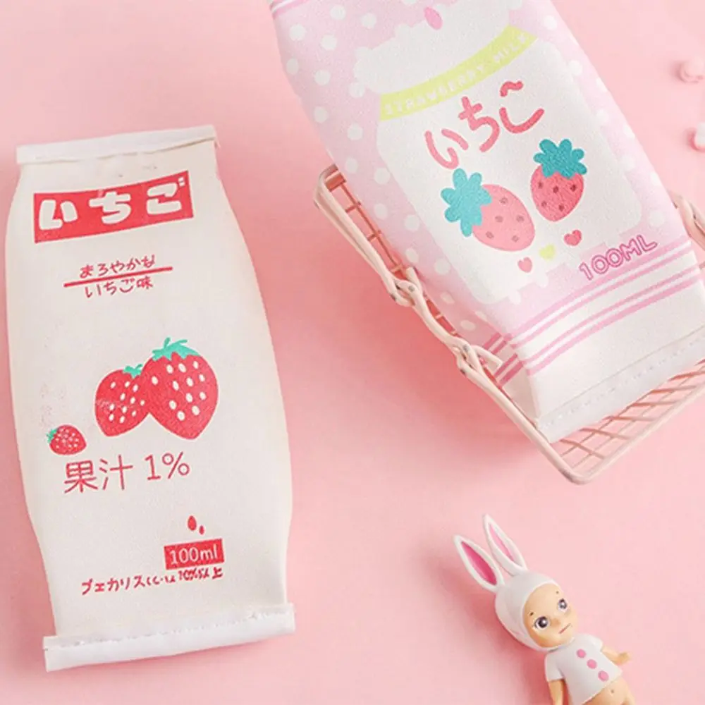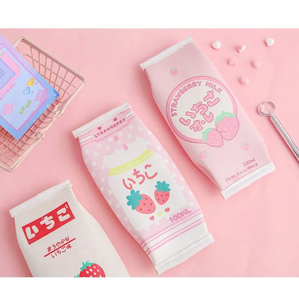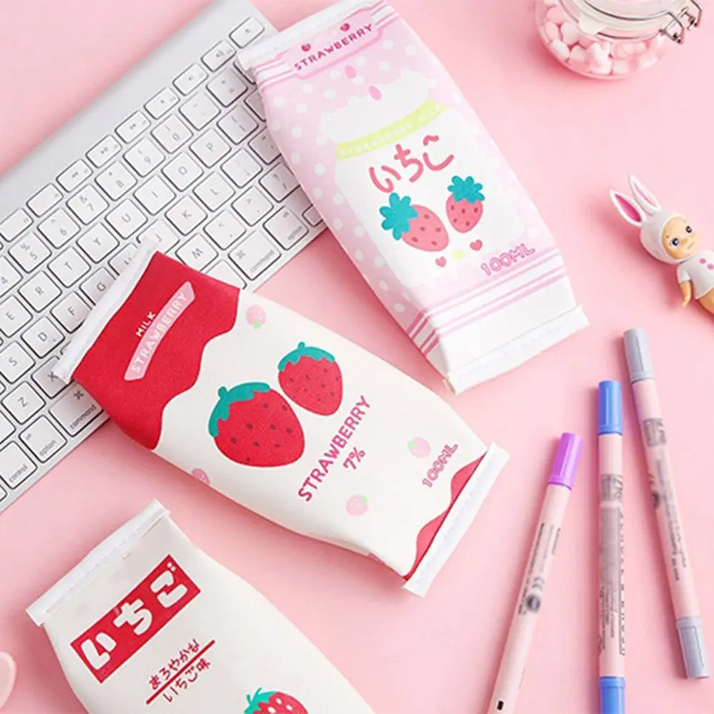 Милые детские подарки, коробка для ручек, школьные канцелярские принадлежности, женская сумка для карандашей в форме молока с клубничным молоком, чехол для карандашей, сумка для хранения