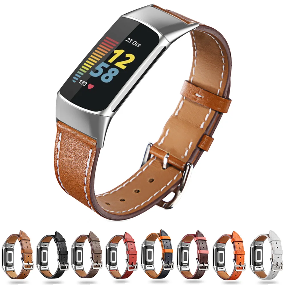 Ремешок из натуральной кожи для Fitbit Charge 5 4 3 2, сменный ремешок для часов, аксессуары