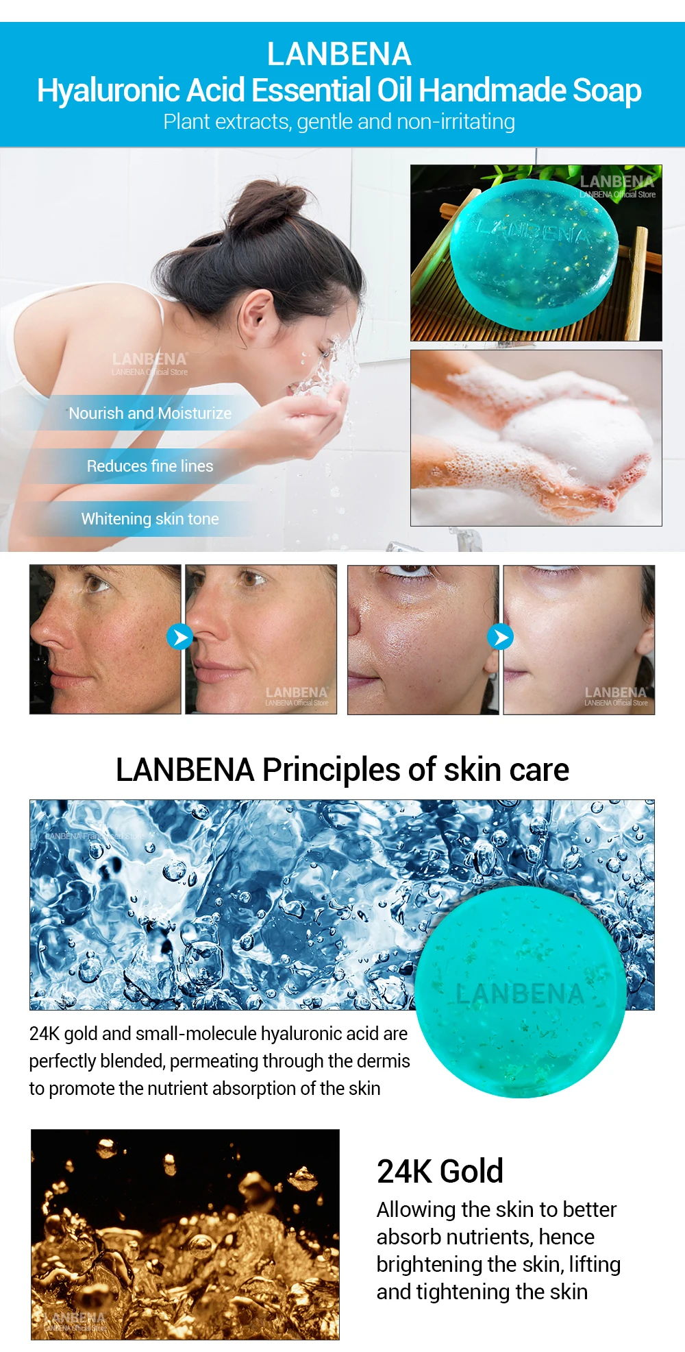 LANBENA мыло ручной работы с покрытыем цвета чистого 24 каратного з...