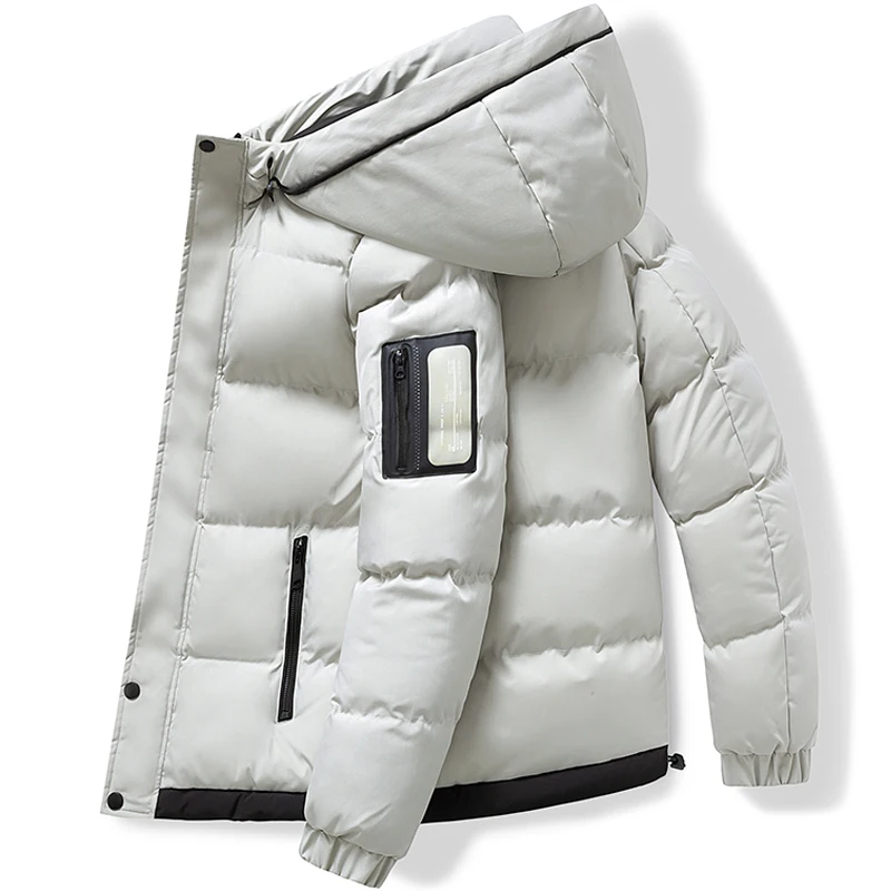Куртка мужская зимняя с подкладкой, утепленная короткая верхняя одежда в стиле хип-хоп, флисовая утепленная, Повседневная брендовая классическая, с капюшоном, 2021