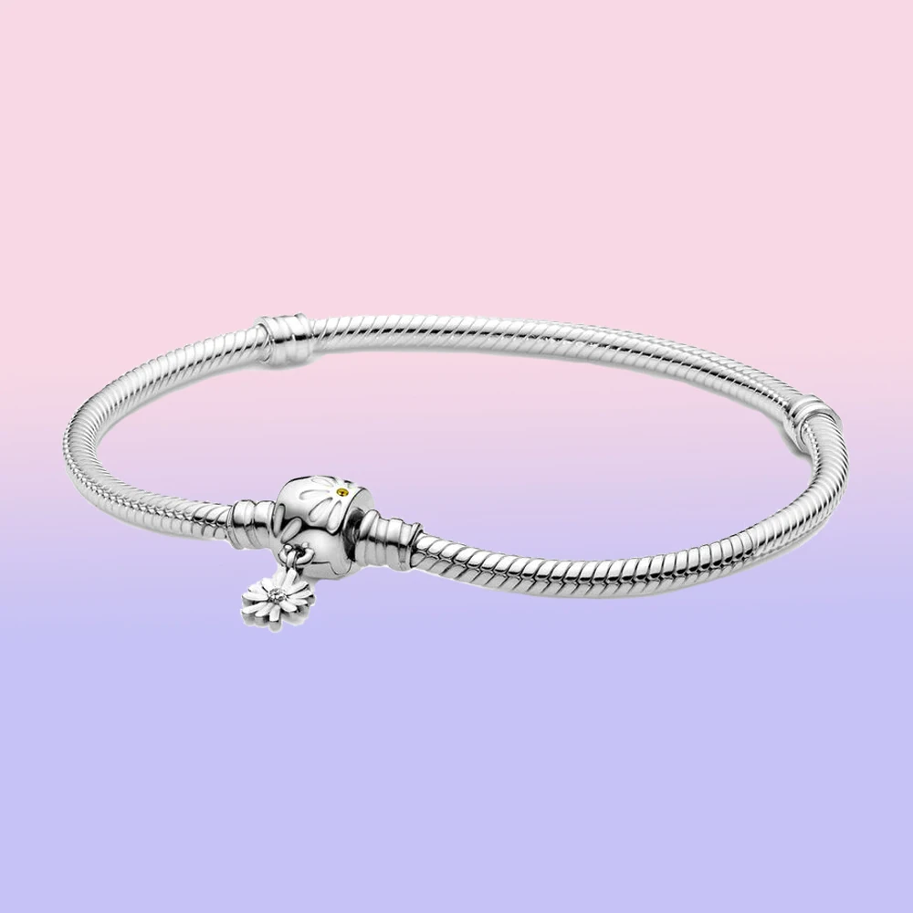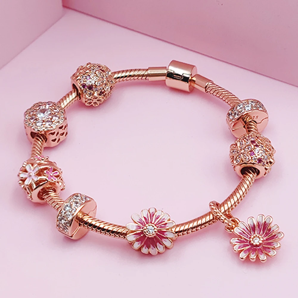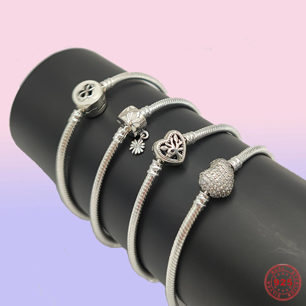 Женский браслет-цепочка из серебра 925 пробы с подвесками в виде сердца, цветка, змеи