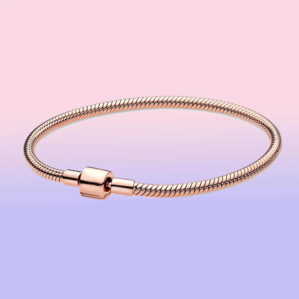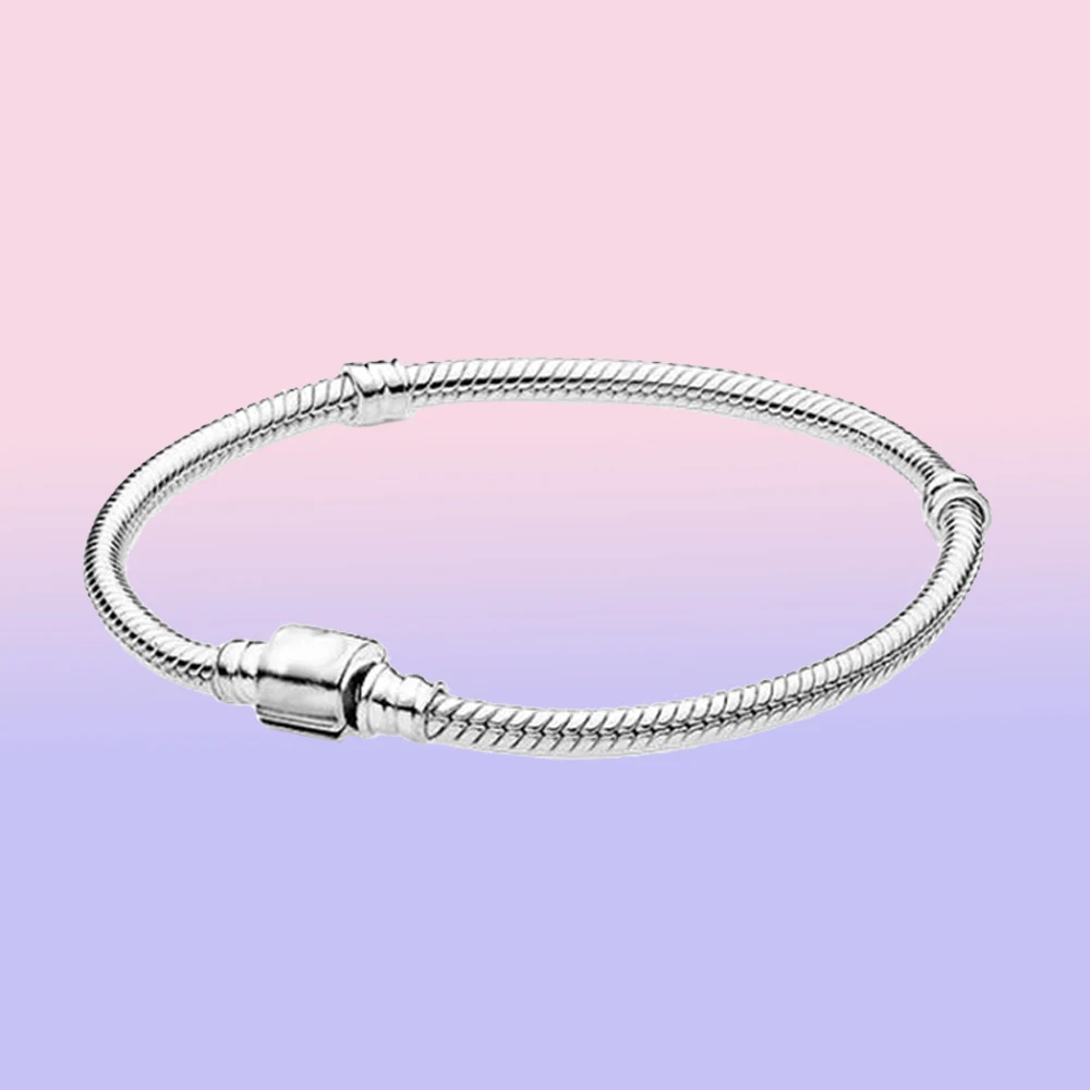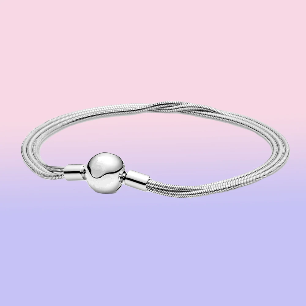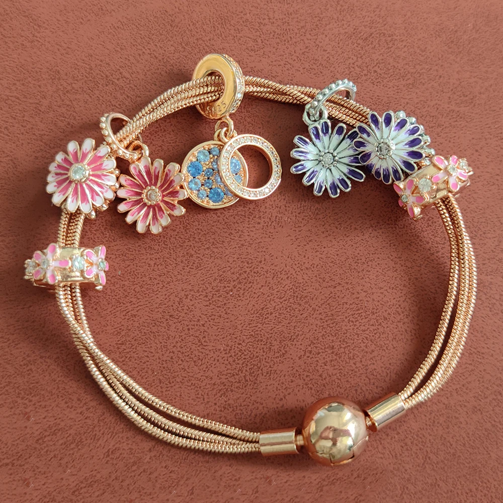 Женский браслет-цепочка из серебра 925 пробы с подвесками в виде сердца, цветка, змеи