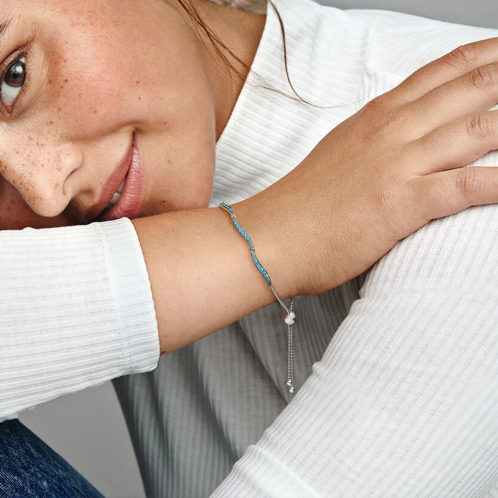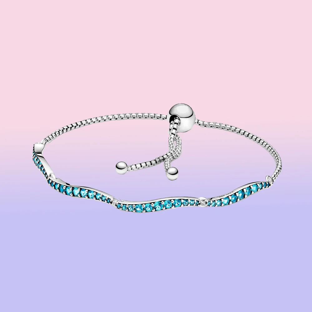 Браслет женский из серебра 925 пробы с голубой волной и пряжкой