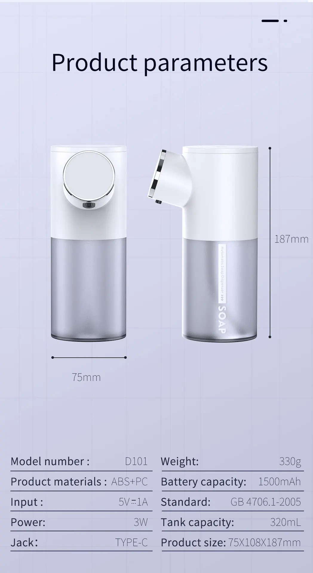 Автоматический дозатор мыла MOTAWISH, 320 мл, с зарядкой от USB, с ...