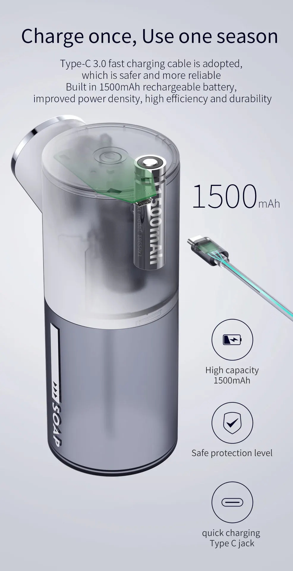 Дозатор мыла, автоматический, с зарядкой от USB, 320 мл