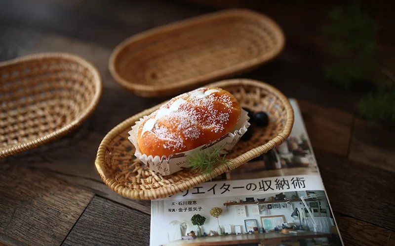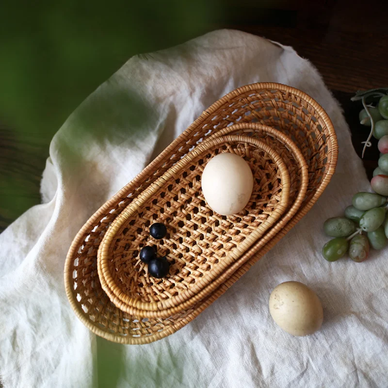 Плетеный поднос из ротанга для хранения, 2 шт., японский поднос, корзина для хлеба и фруктов, органайзер для столовой посуды