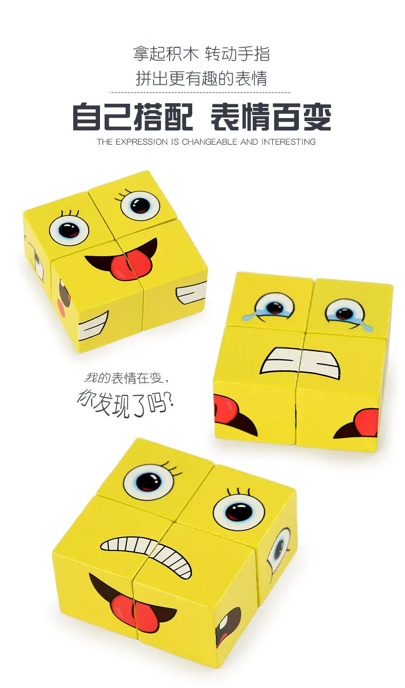 Деревянная игрушка-выражения, Деревянный волшебный куб, узор лица, ...