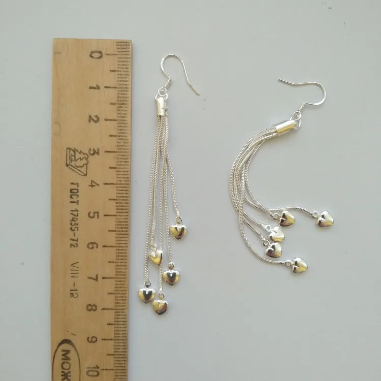 Это серьги с хорошей историей. Люблю этот магазин. Уже заказывала здесь украшения. Три месяца назад пришла цепочка. Ношу и ничего плохого с ней не происходит. Решила к ней серьги взять. Выбрала эти с сердечками. Продавец их отправил моментально, но они пропали во Внуково. Причем, ещё одна моя посылка пропала в это же время и там же. Продавец отправил эти серьги второй раз, причем я спор не открывала , а просто сделала отметку, что доставлено. Настолько порядочный продавец, что настоял и отправил товар ещё раз. Это было его решение. Я сделала заказ, он обнулил цену и отправил. На этот раз посылка добралась до меня благополучно. Эти серьги мне теперь по особенному дороги. Ношу с благодарностью. Ещё подбираю подвеску с сердечком ♥️ Про серьги : длина от начала крючка до самого нижнего сердечка 8,5 см ; сами сердечки 0,5 см ; толщина цепочки 0,1 мм. Металл светлый.На крючке клеймо. И ещё раз хочу поблагодарить продавца. Конечно же эта покупка будет не последняя.
