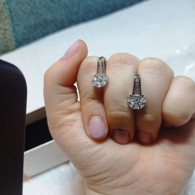 Невероятно красивые серьги- цветочки. Камни все на месте, очень красиво сверкают ! Красиво очень выглядят на ушах. Есть оттиск S925( стерлинговое серебро) . Замок функционирует очень хорошо. Изделие выполнено аккуратно. Заказала себе перед Новым годом) Очень красивый вариант на подарок. Также у продавца заказывала маленькие серьги для дочки - оба варианта серёжек мне очень нравятся . Продавца смело рекомендую.не впервые заказывала тут. Доставка быстрая. Спасибо!