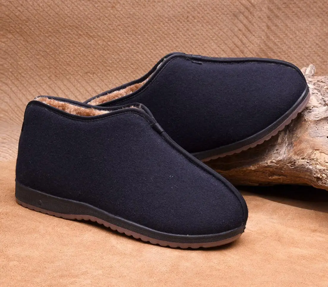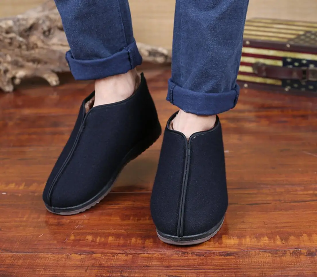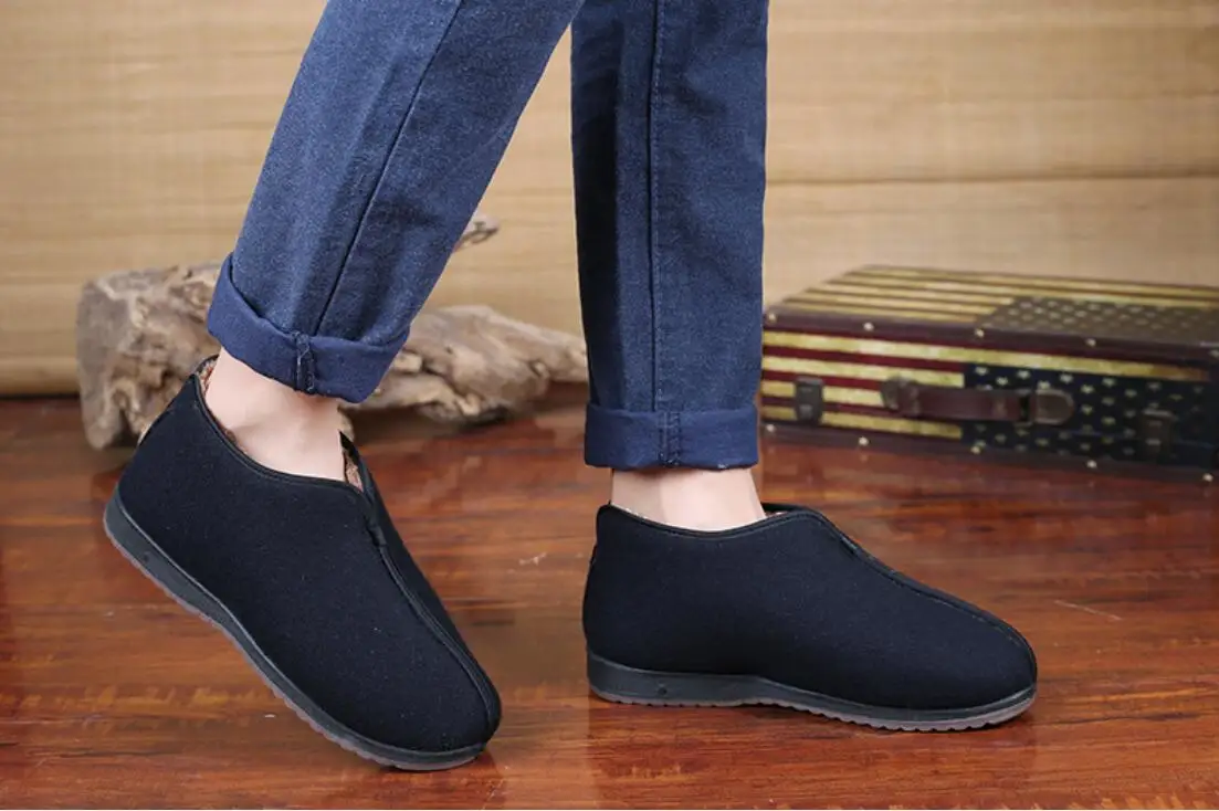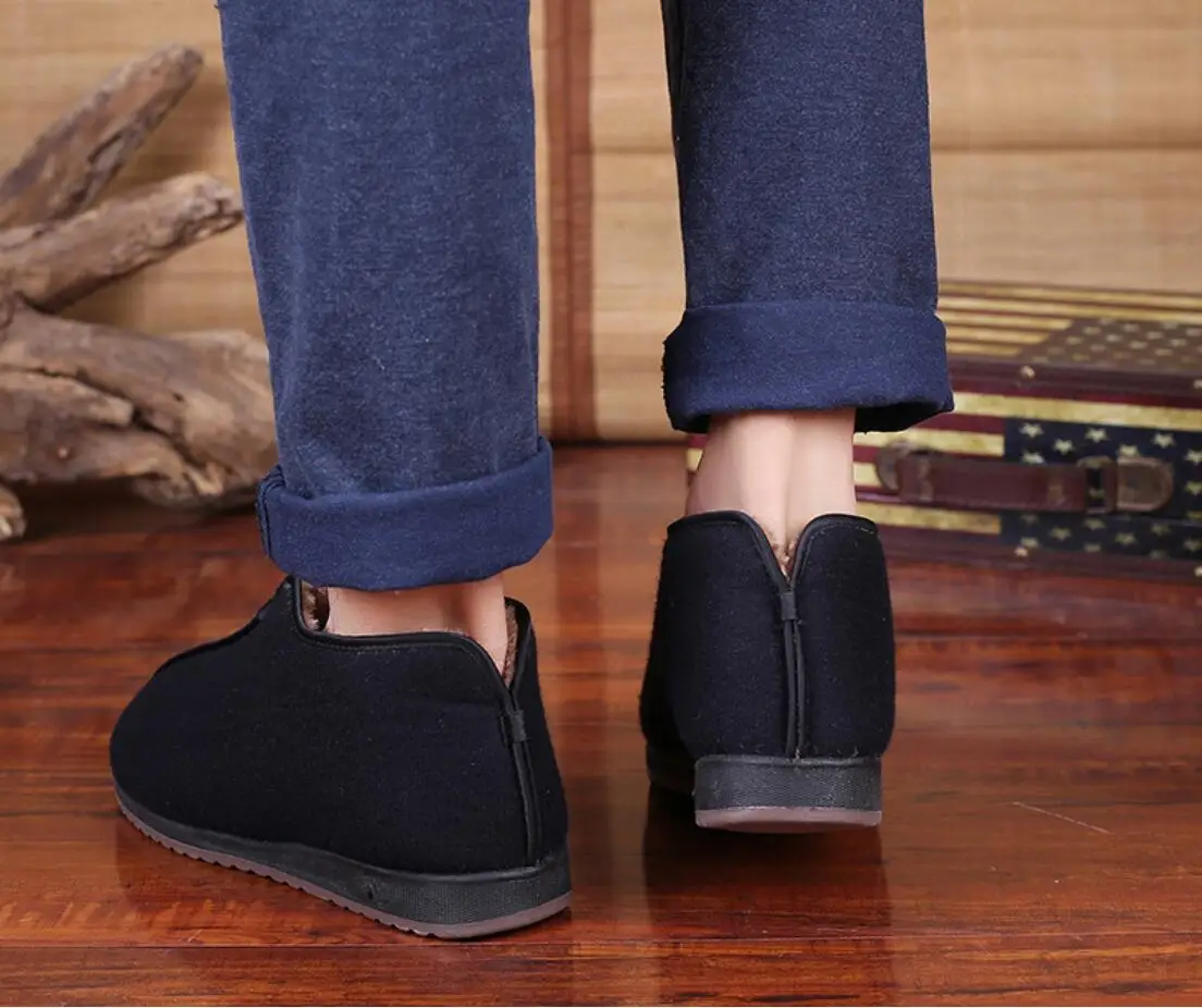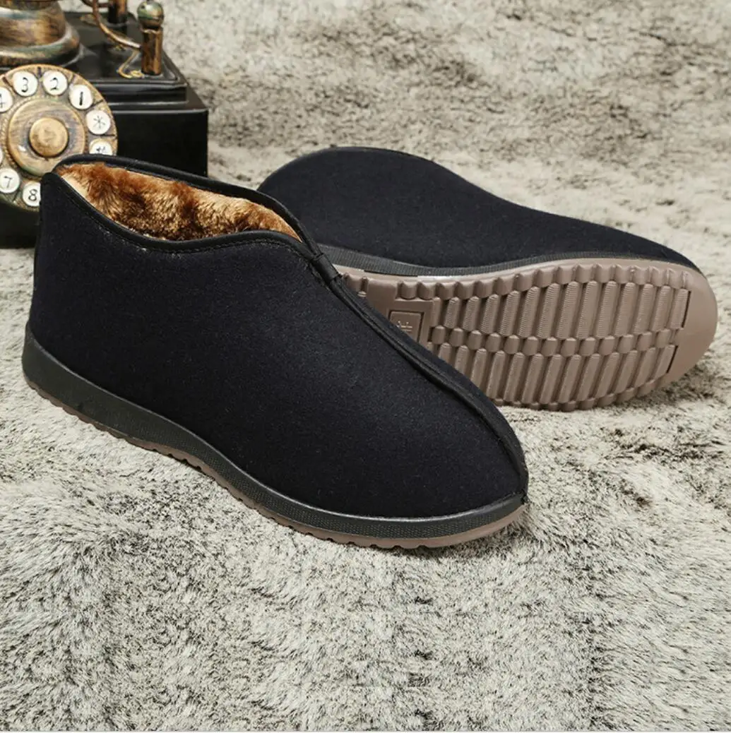 Зимние традиционные Пекинские тканевые туфли, плюшевые утепленные мужские туфли, высокие теплые мужские туфли wo, хлопковая обувь для людей среднего возраста