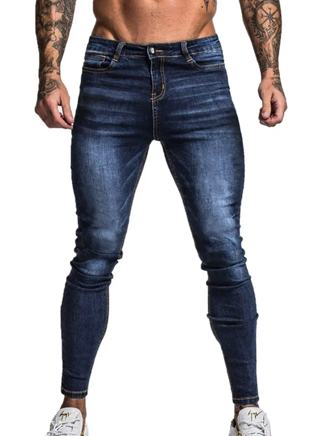 Джинсы мужские Стрейчевые однотонные, повседневные джоггеры, классические модные брюки из денима, уличная мода, облегающие