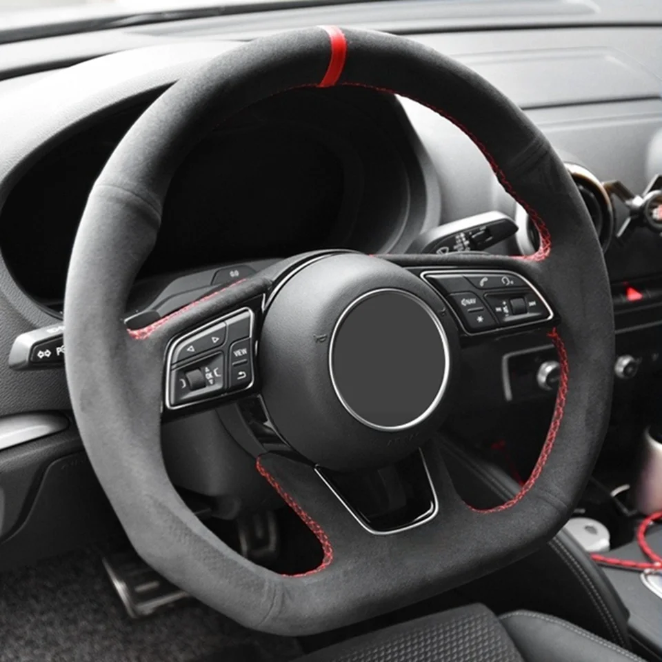 DIY ручной работы черная замша красный маркер чехол рулевого колеса...