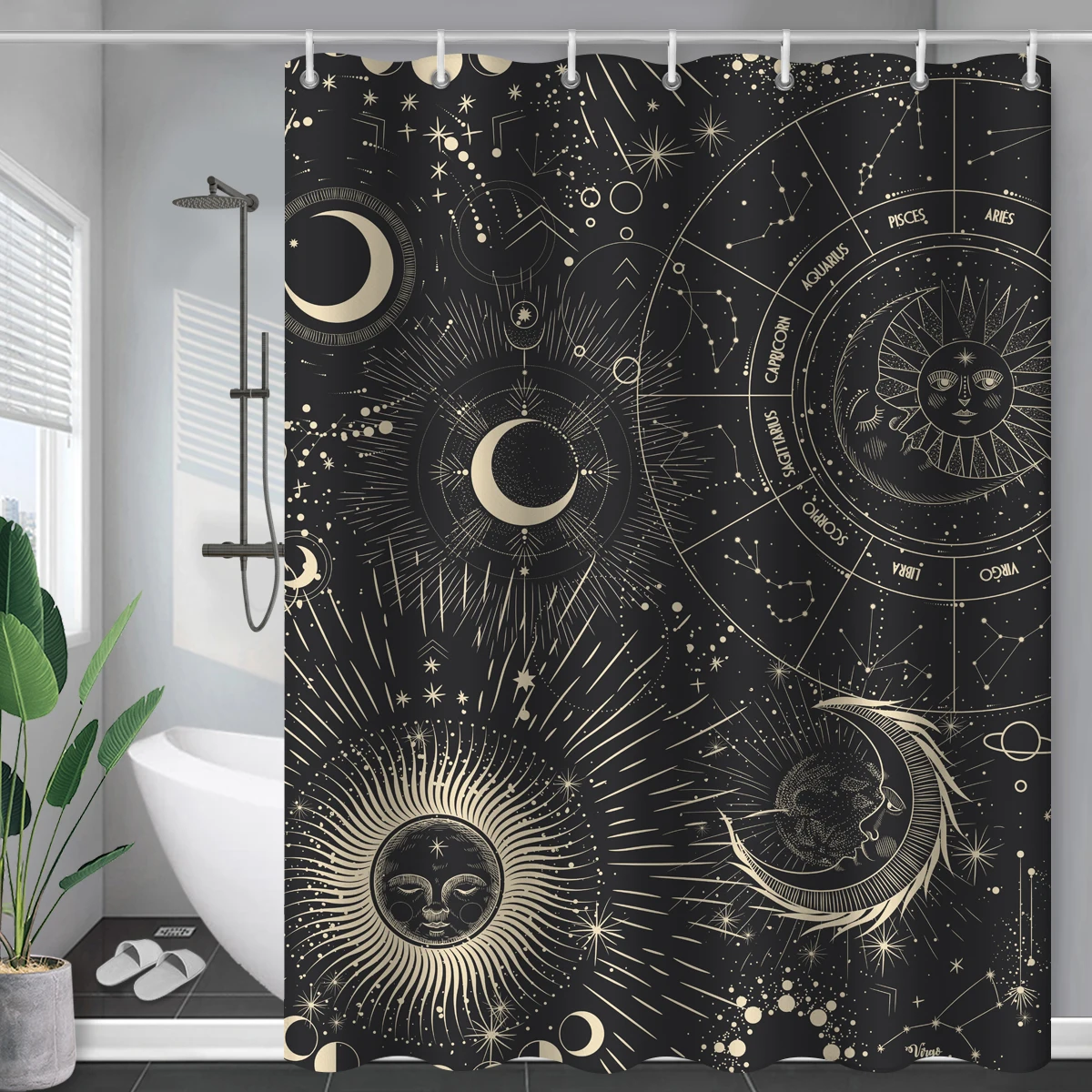 Занавеска для душа из ткани с созвездиями, румяна, солнце и луна, современный абстрактный мистицизм, водонепроницаемые аксессуары для ванной комнаты