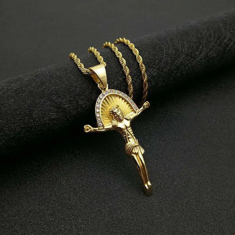 Классическая мода ретро очарование золотой цвет Кристалл Иисус амулет кулон ожерелье мужчины...