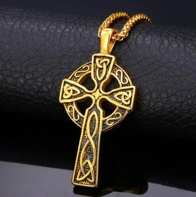Мужской кельтский узел Крест Кулон позолоченный/цепь из нержавеющей стали Ретро Кристиа...