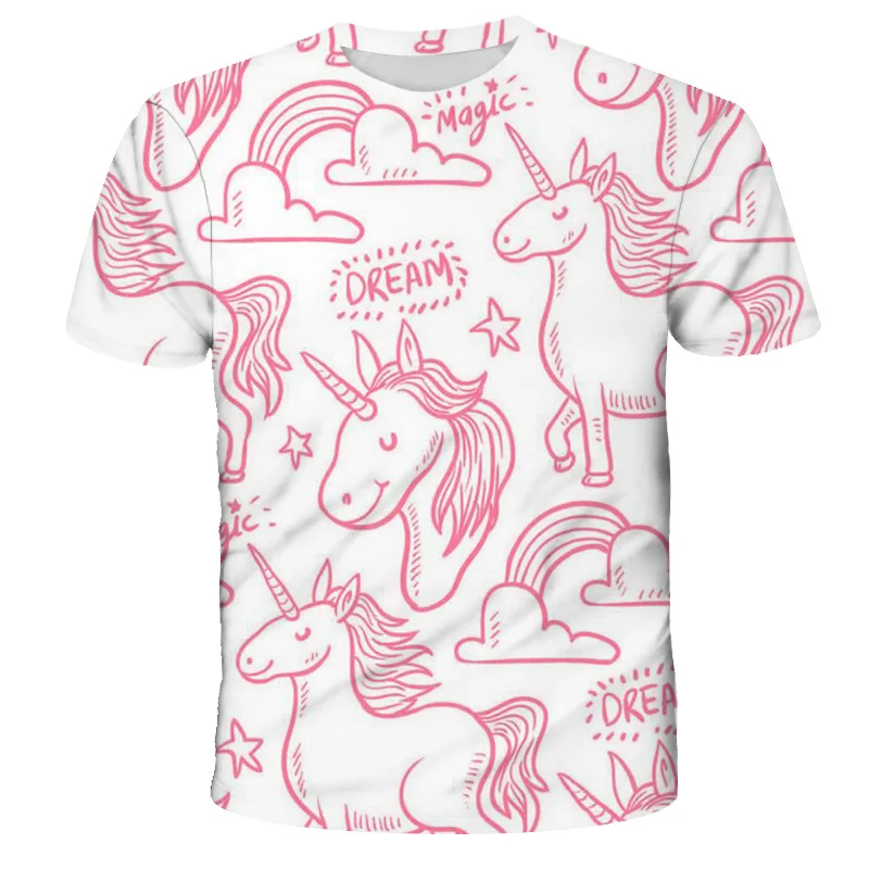 Для девочек 3D с принтом Единорог, футболки милый unicorno футболка...