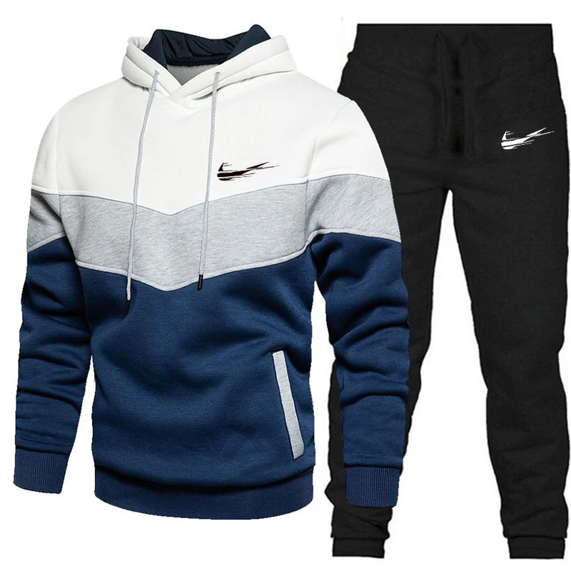 Мужской костюм в стиле пэчворк 2021, повседневная одежда с капюшоно...