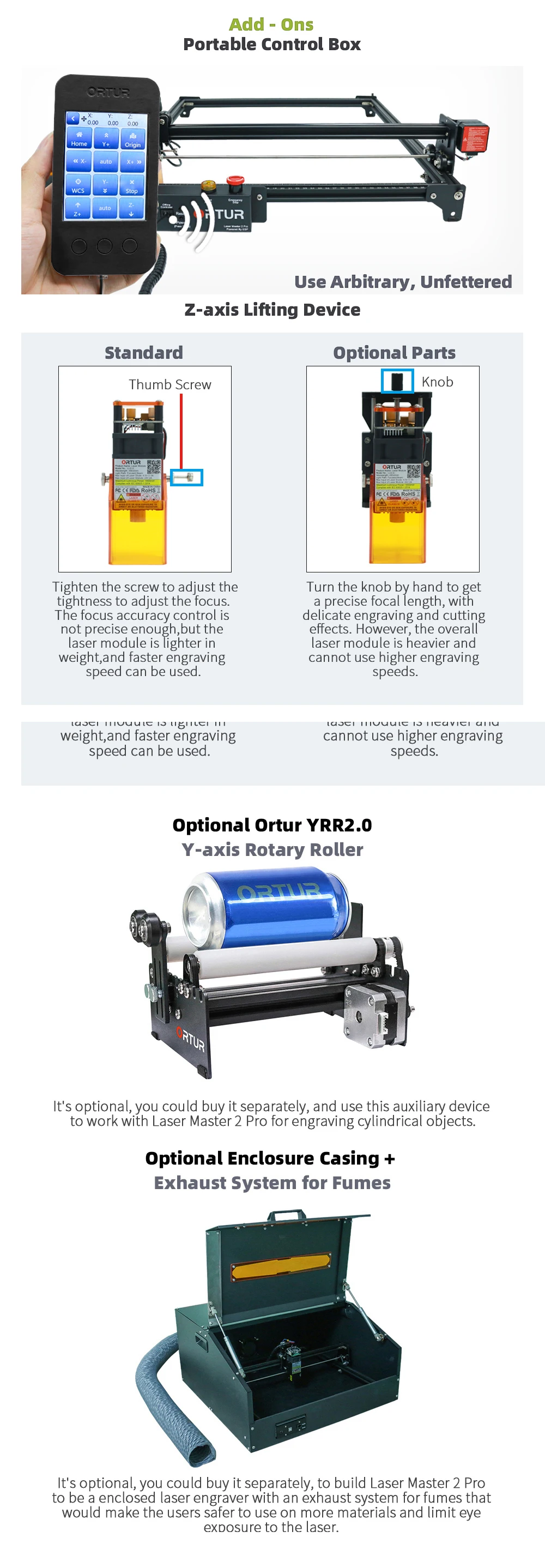 Add-ons1.Ortur Control Box (Offline Controller) 2.Adjustable Z-axis Lifting Device