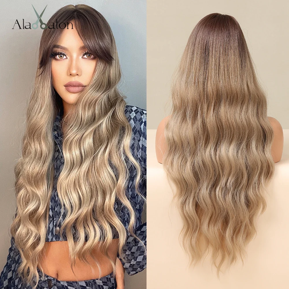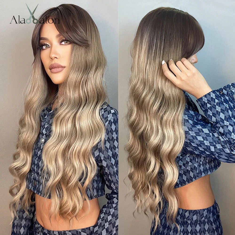 ALAN EATON Ombre волнистые парики черный коричневый блонд средняя часть косплей синтетические парики с челкой для женщин длинные волосы парики поддельные волосы