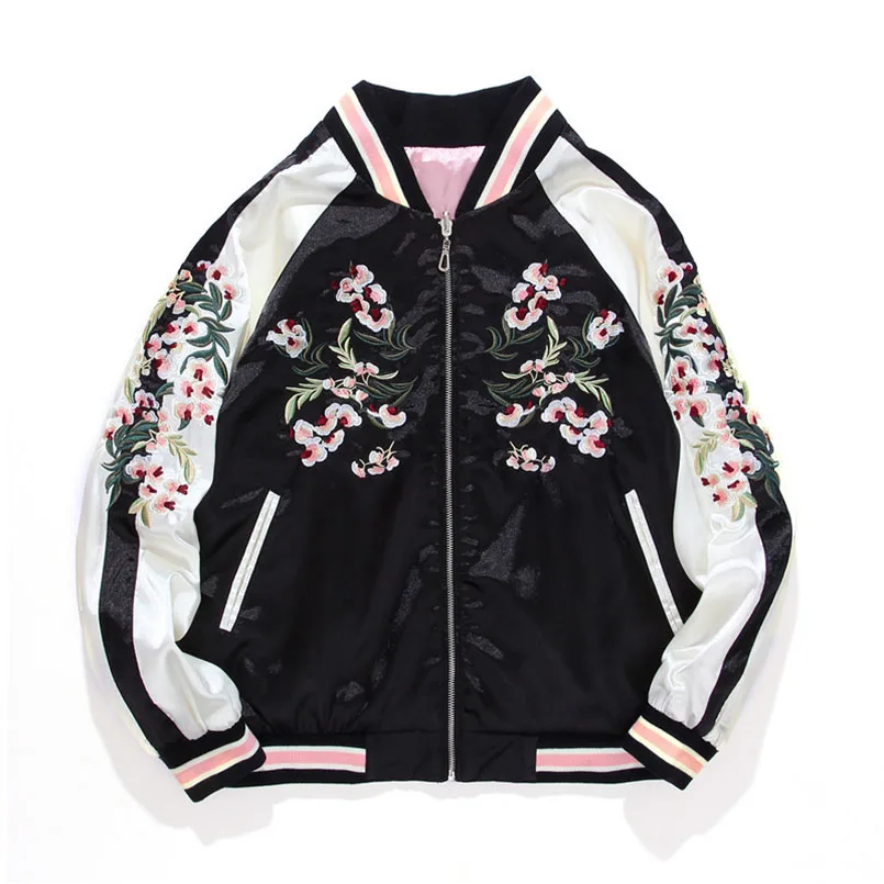 Атласная Женская бейсбольная куртка Yokosuka Sukajan с вышивкой, двусторонняя Женская куртка-бомбер с цветочным принтом в стиле Харадзюку, осень 2022, японские девушки