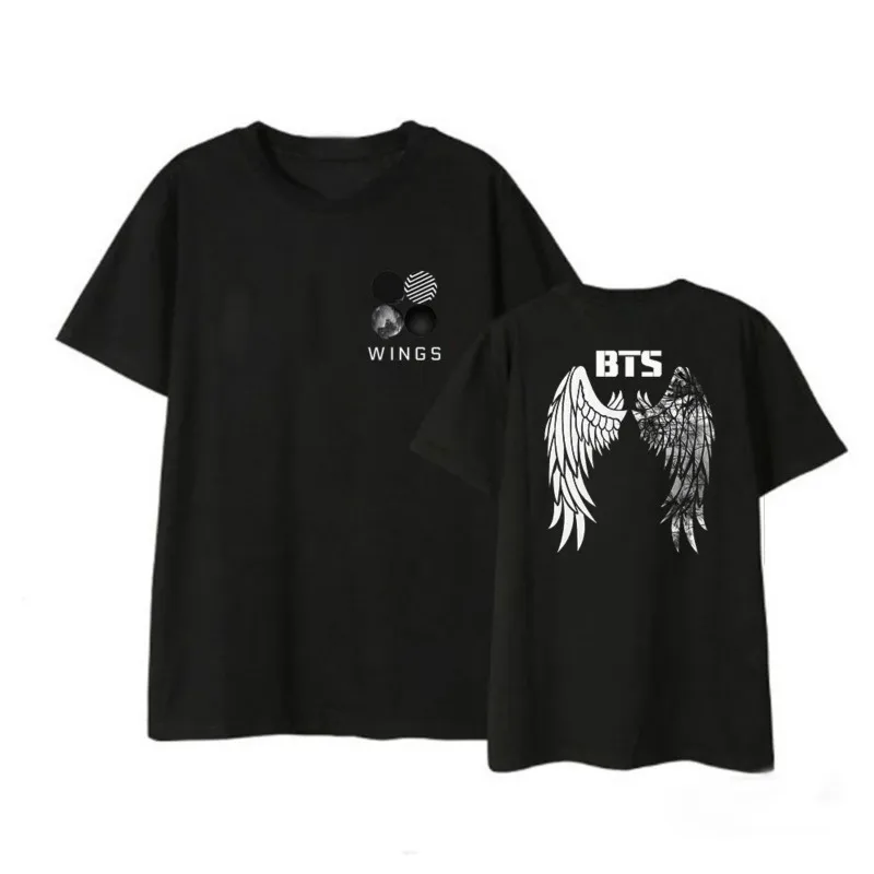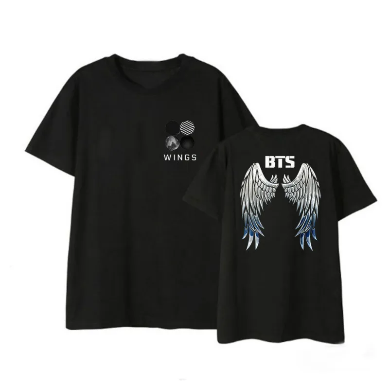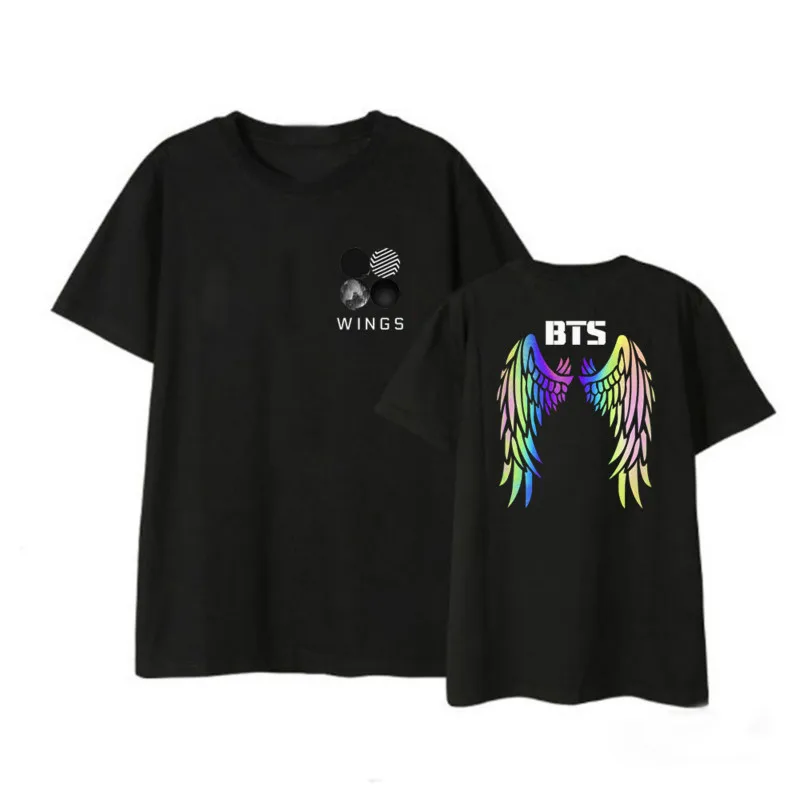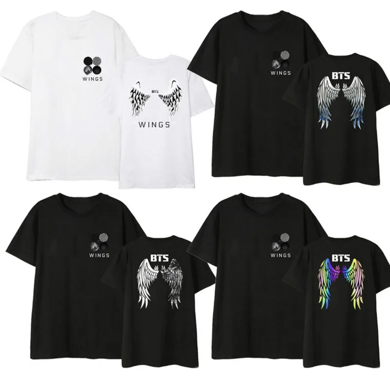 Пуленепробиваемая Футболка Kpop с V-образным вырезом для мальчиков и женщин, модная повседневная футболка с коротким рукавом и ангельским крылом, лето 2021