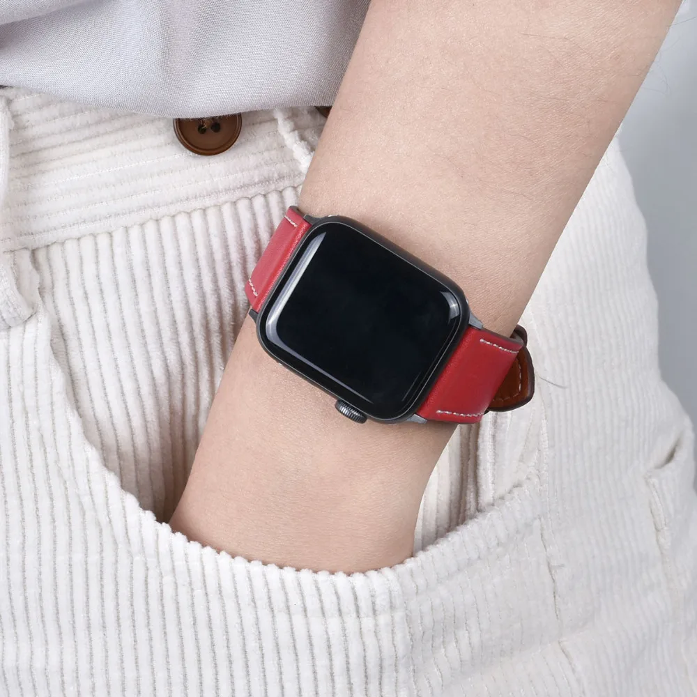 Ремешок из натуральной кожи для Apple watch 44 мм, 40 мм, 38 мм, 42...