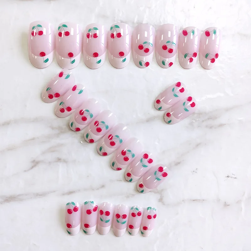 Съемные накладные ногти в виде вишни, французского миндаля, 24 шт.к...
