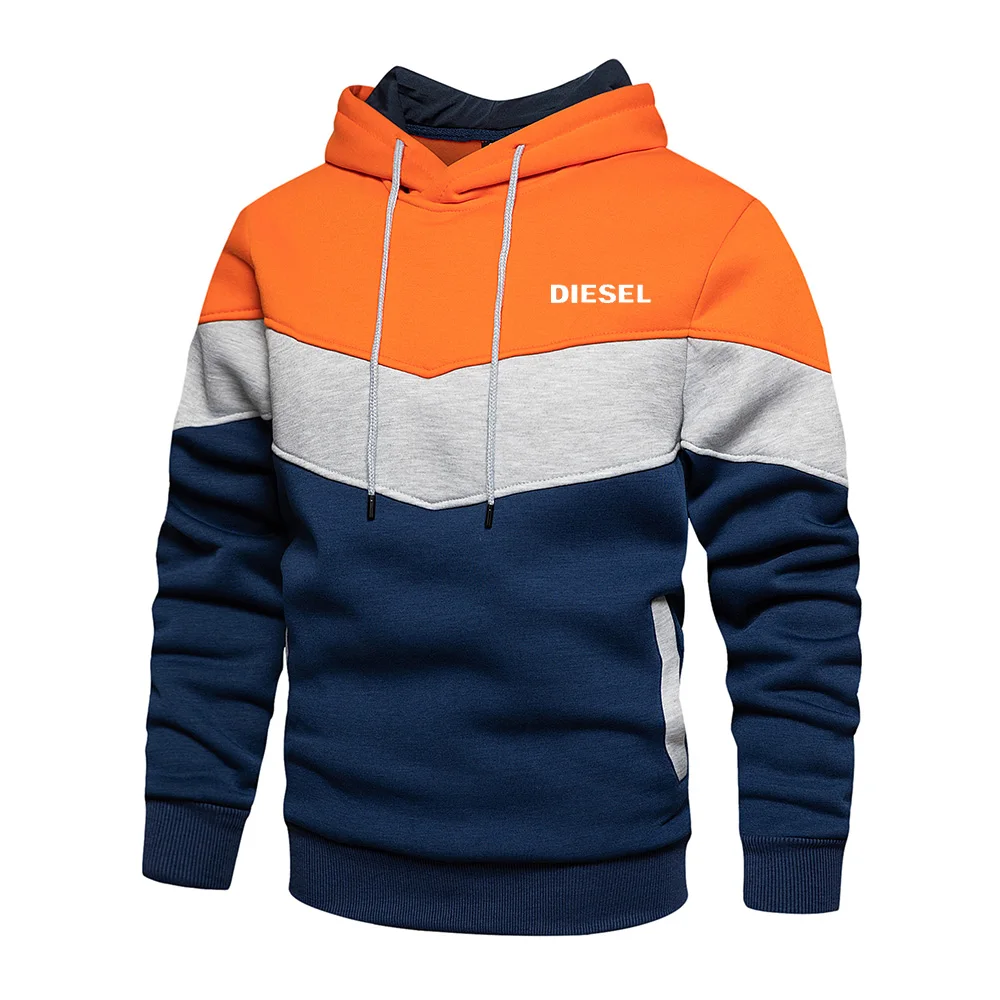 Толстовка с капюшоном в стиле пэчворк, мужская повседневная теплая ...