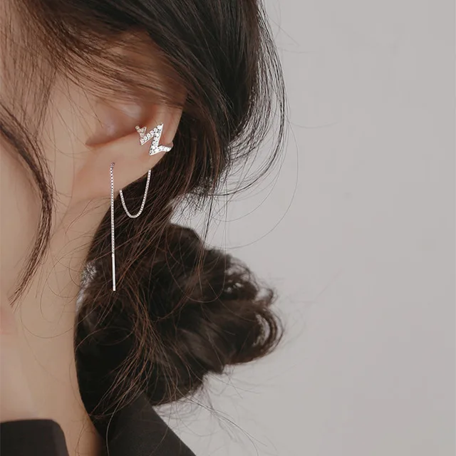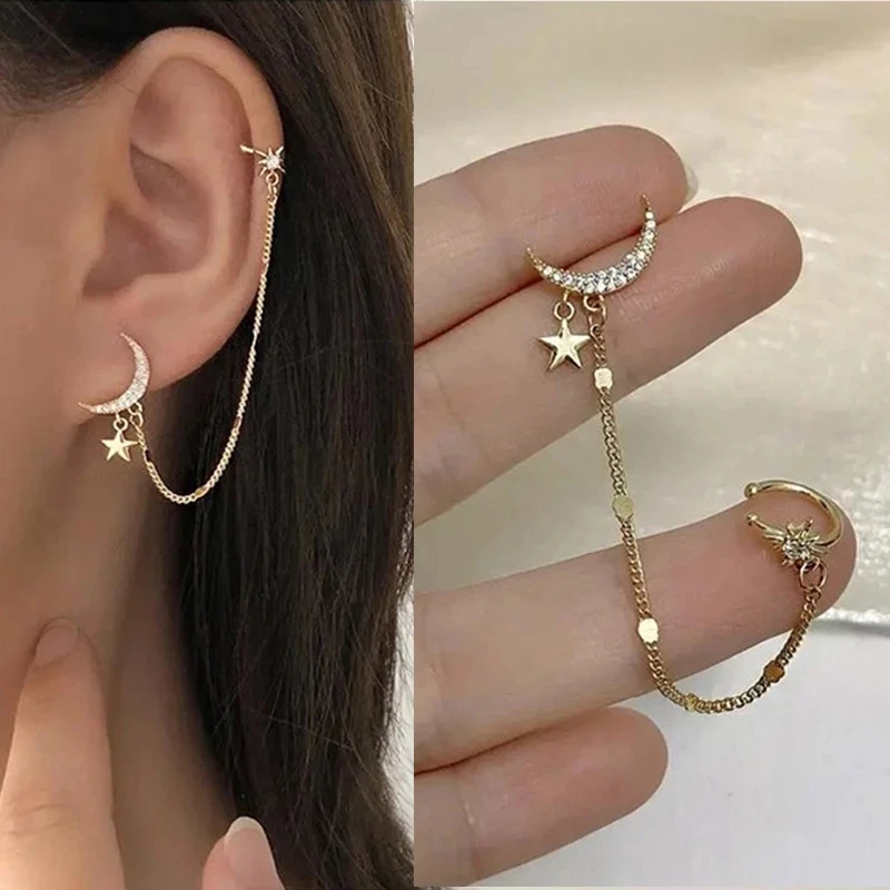 Серьги-гвоздики с подвесками женские, простые блестящие украшения в форме звезды, Креста, длинная цепочка, кисточки, геометрическое Украшение Для Пирсинга Ушей, Вечерний Подарок для девушек, 1 комплект