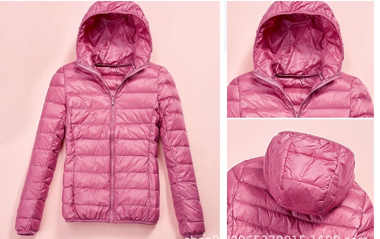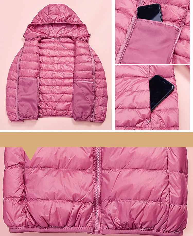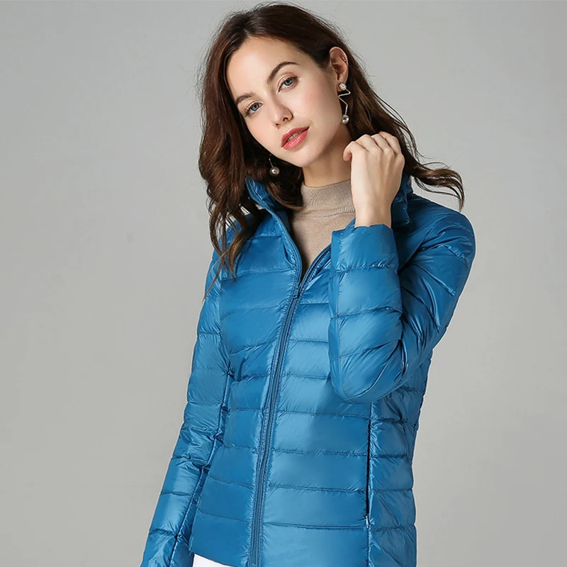 Пуховик женский ультралегкий, тонкий пуховик с капюшоном, на белом ...