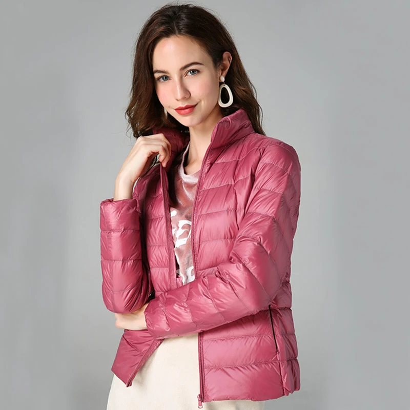 Женская зимняя куртка, новинка 2021, ультралегкие парки на утином пуху, приталенная Женская куртка-пуховик, портативное ветрозащитное пуховое пальто, женская куртка