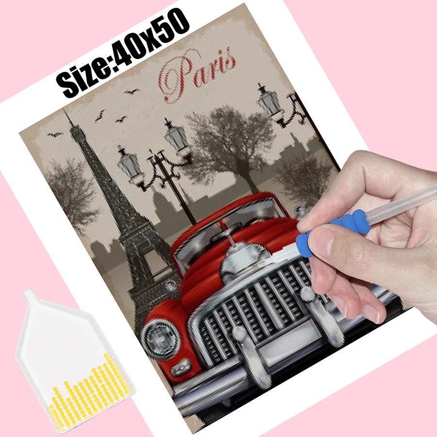 Полноразмернаякруглая Алмазная вышивка автомобиля в Париже 5D алмазная фотография домашний Декор подарок AX2942