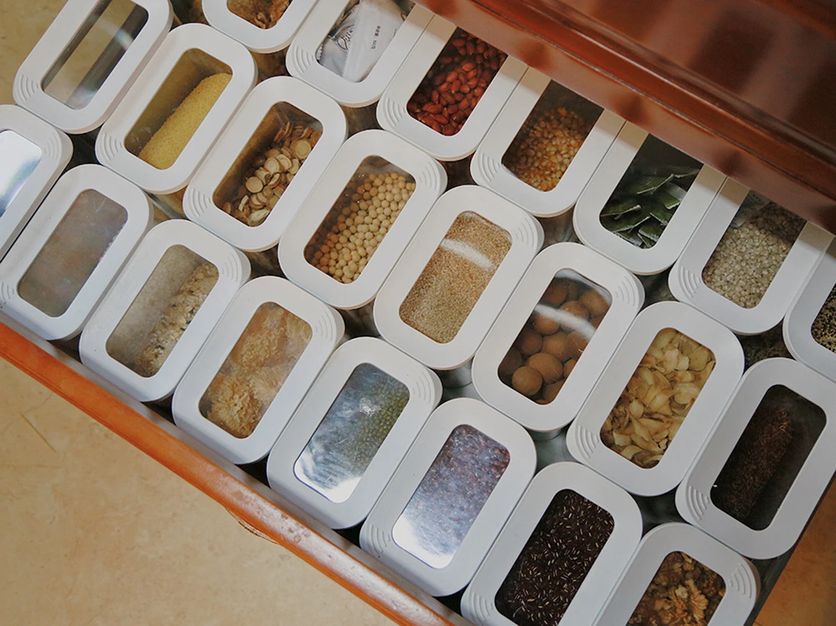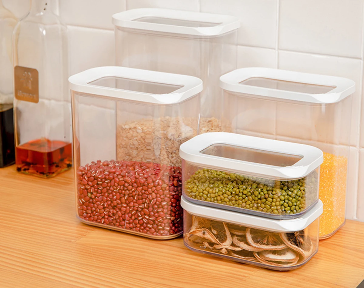 Кухонный Контейнер для хранения пищи, набор контейнеров, органайзер, квадратная Вакуумная крышка, герметичные банки для кладовой, лапши, бобовых, злаков, риса, пасты
