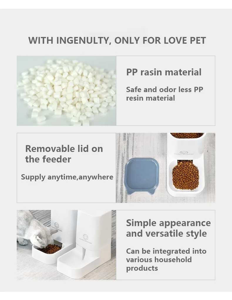 Предназначен для домашних животных, является более изысканным и компактным, чем когда-либо, покрывая площадь 0,045 м ватт 2; Меньше, чем бумага формата А4, но все-таки магазинах 3.8L воды/2,1 кг домашнего животного сухих продуктов.