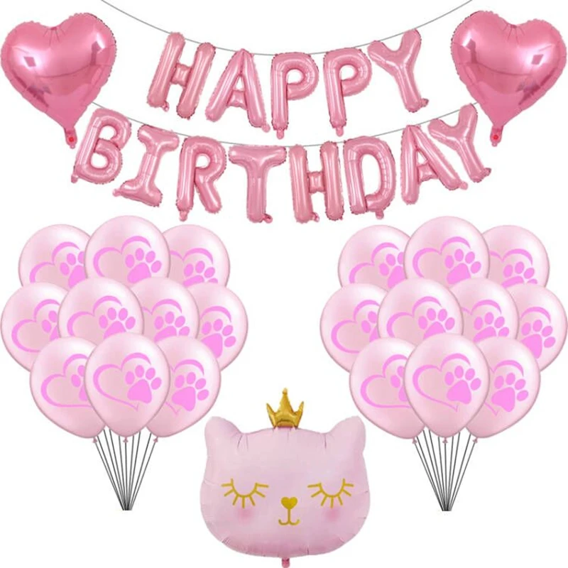 Воздушные шары в форме кота с розовой золотистой короной, элегантные аксессуары для вечеринки в честь Дня Рождения, мяу, домашних животных, следов лапы, украшение для будущей мамы, подарок для девочек, игрушка, шары
