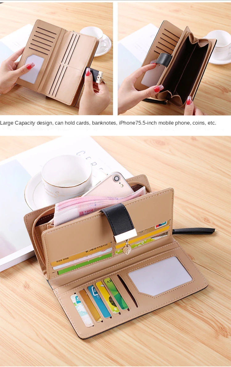 Женский кошелек с золотой пряжкой в форме листа, женские длинные ко...