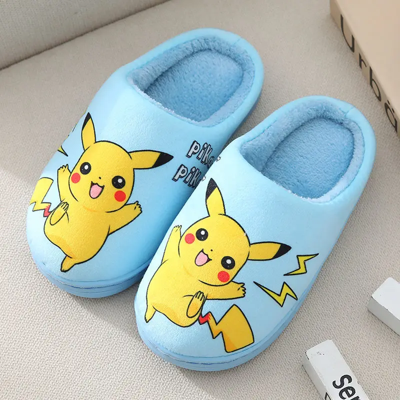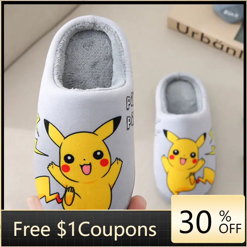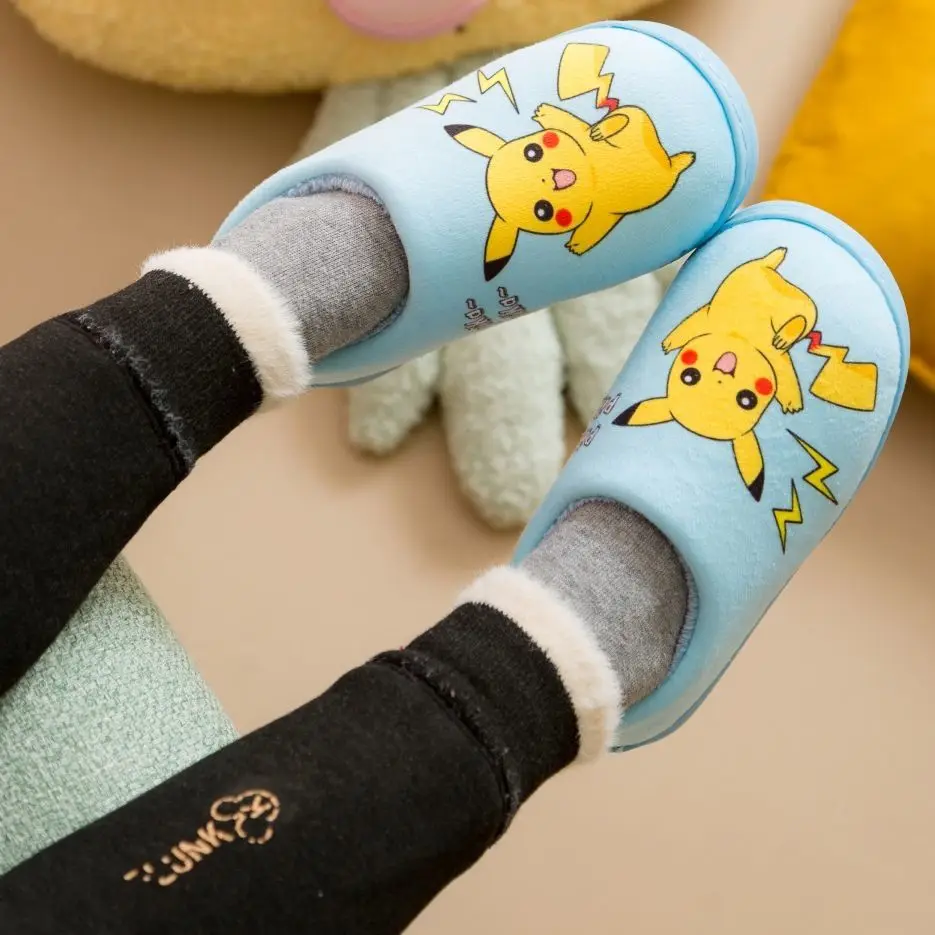 Зимние тапочки с покемоном Пикачу, детская обувь для маленьких девочек и мальчиков, меховые сланцы, домашняя обувь, теплые пушистые домашние тапочки для детей