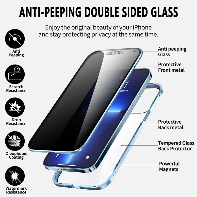 Антипип Магнитный чехол для iPhone 13 12 Mini 11 Pro XS Max XR X 7 8 6 Plus 360 полностью двухсторонний стеклянный адсорбционный чехол для конфиденциальности