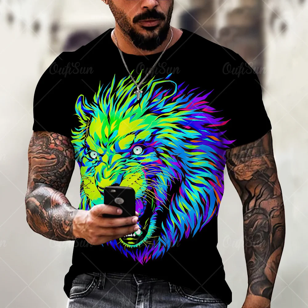 Футболка мужская с 3D-принтом льва, модная повседневная тенниска оверсайз с круглым вырезом и короткими рукавами, универсальная уличная одежда в стиле панк