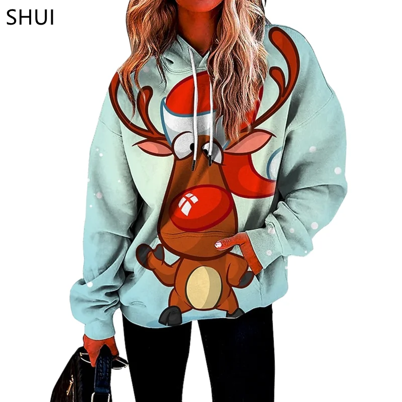 Рождественские толстовки, топы, толстовка, кавайная одежда, модная женская осенняя одежда, уличная одежда, топ с рисунком