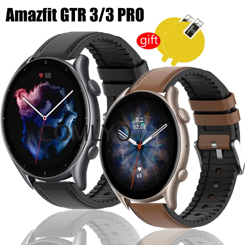 Пленка + ремешок для Amazfit GTR3 GTR 3 Pro ремешок для умных часов, кожаный силиконовый мягкий браслет для GTR 3 Pro, защитная пленка для экрана