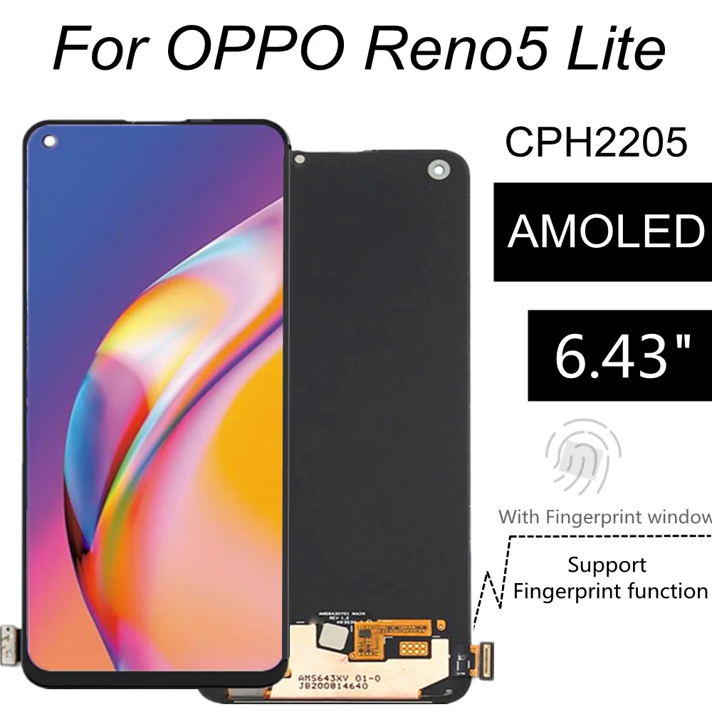 ЖК-дисплей 6,43 дюйма AMOLED для OPPO Reno5 Lite CPH2205, сменный сенсорный экран в сборе