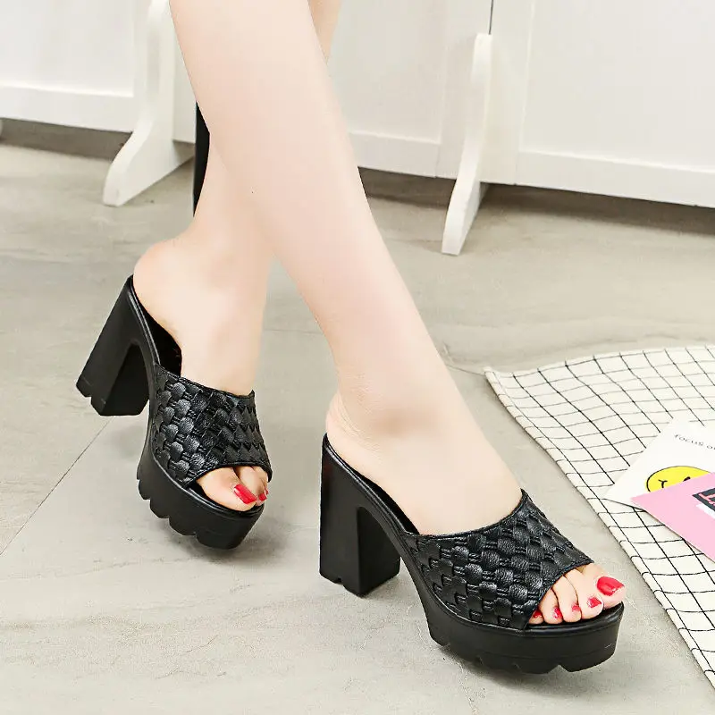 Сандалии женские на толстой подошве, элегантные модные повседневные пляжные туфли с открытым носком, яркий каблук средней высоты, лето